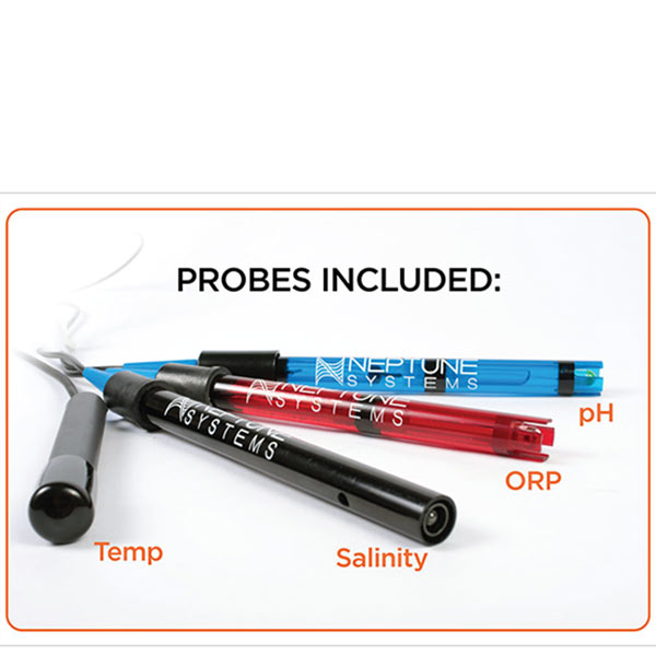 The Apex System includes probes for Temperature, pH, ORP, and Salinity. The pH and ORP probes are now double-junction as well so they hold calibration longer and have a longer lifespan than single-junction probes.